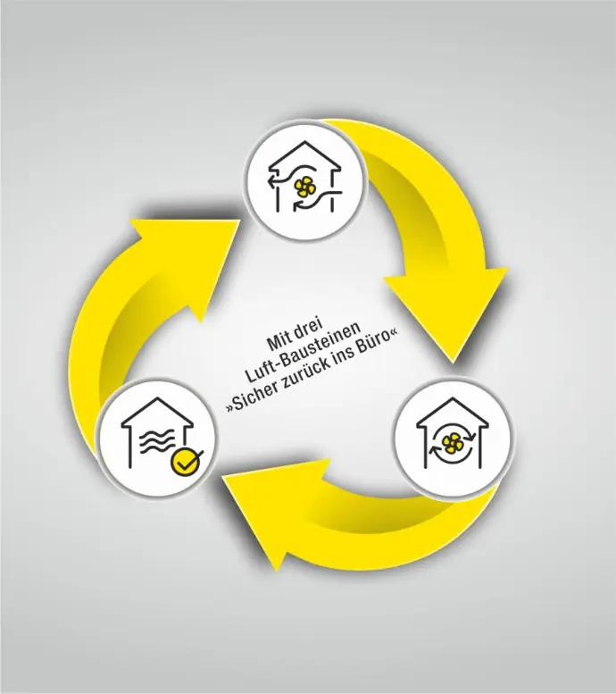 Eine gute Luftqualität hängt von zahlreichen Faktoren ab. Um die damit einhergehende Komplexität zu reduzieren, haben wir die Initiative »Sicher im Büro« entwickelt.