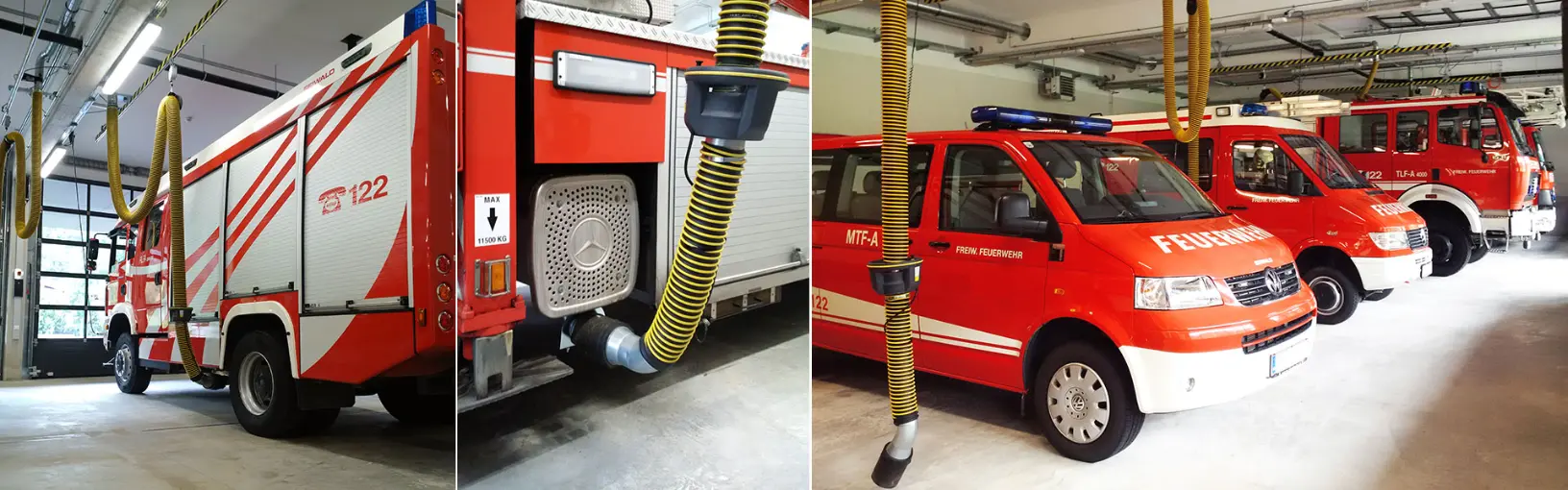 Krebserregende Dieselabgase werden vollständig aus der Fahrzeughalle abgeführt.